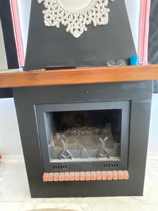¡IMPORTANTE! La Chimenea se encuentra en Zamoranos (Córdoba). No se envía. Chimenea de interior: - Marco de metal negro. - Frontal de cristal. - Detalles en piedra.