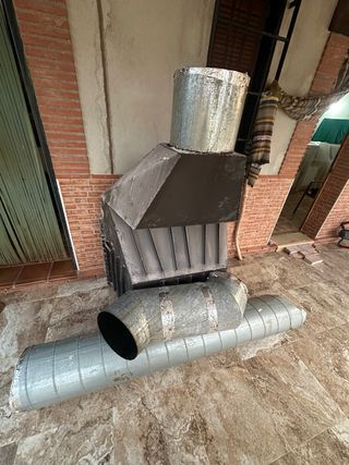 Se venden tuberías para chimenea o caldera de acero inoxidable. Hay 9 m disponibles, solo me quedan los del exterior (habría que desmontarlos). Tienen 25cm de ancho Dispongo de 1T, 3 codos de 45°, 3 enganches de pared, además de todas las uniones entre tubos. PRECIO: 60€/M, T 40€, codos y enganches 20€.