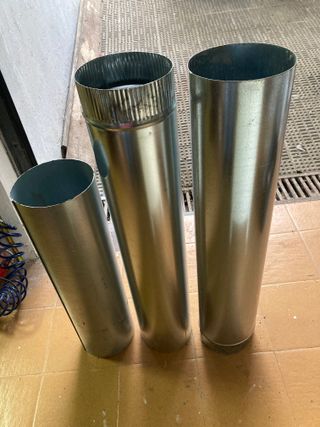 Vendo dos tubos rectos de acero inoxidable para salida de humos de chimenea. Se encuentran en muy buen estado. Incluyo otro tramo de 75 cms - Fabricados en metal - Ideales para chimeneas