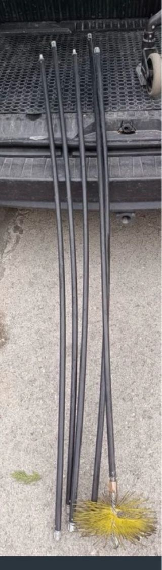 Accesorio para la limpieza de chimeneas con un diseño único. - Fabricado en metal. - Color dorado y marrón.