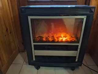 Preciosa estufa eléctrica con diseño de chimenea. Es negra y está en muy buen estado. - Funciona perfectamente. - Ideal para calentar una habitación pequeña.