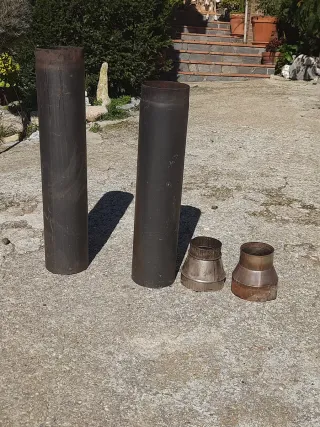 Es venen 2 tubs de xemeneia. Un de 101cm i l'altre de 89cm. Son dels gruixuts. 2mm d'espesor. També es reralen dues reduccions de 20cm a 15cm. A recollir a la Floresta (Sant Cugat)