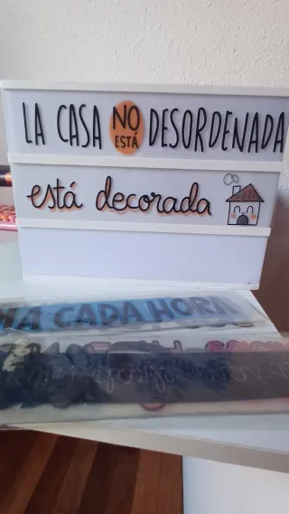 Letrero luminoso con un diseño original y divertido. - Mensaje La casa no está desordenada, está decorada. - Incluye un dibujo de una casa con chimenea. - Ideal para dar un toque personal a cualquier espacio.