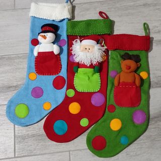 Calcetines navidad decorativos. Para colgar en pared, chimenea,cabecero... De lana de la marca Russ. Los 3 calcetines 25€ Unidad: 10€ Medidas: 52x24cm