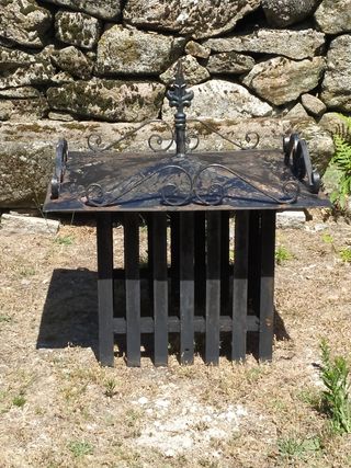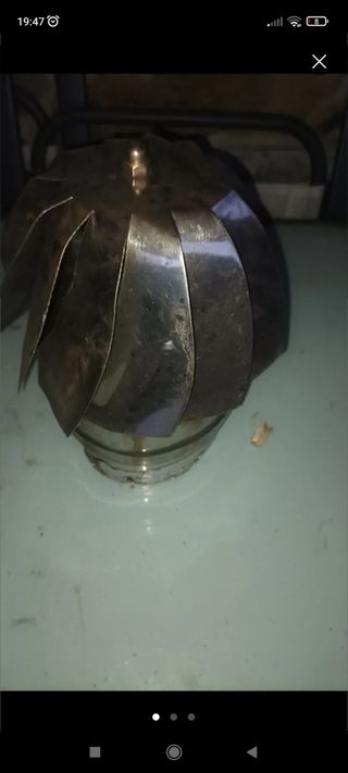 Vendo capuchón cuadrado de hierro para chimenea. Es un capuchón a 4 aguas con bonitos remates por los 4 lados y un remate más alto en el centro. Está en buen estado, solo necesitaría una mano de pintura negra aunque no necesaria porque es la parte que queda por arriba. Las medidas están en la tercera foto. 38*38 y 40 de alto. Tiene un bordillo de hierro de 2 cm por los 4 lados para rematar y ajustar a medidas de chimenea algo inferiores. La última foto recoge com queda el capuchón una vez montado. Se vende porque cambiamos a chimenea de piedra no por mal estado del capuchón.