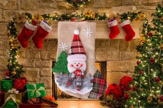 Set de 4 colgantes para chimenea con motivos navideños. - Diseño de árbol de Navidad. - Diseño de Papá Noel. - Diseño de muñeco de nieve. - Diseño de reno.