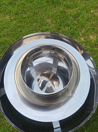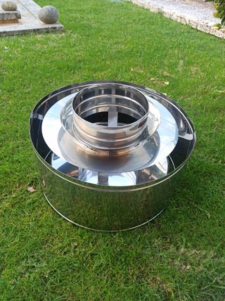 Preciosa pieza de acero inoxidable para chimenea. Ideal para proteger de la lluvia. - Fabricado en acero inoxidable. - Diámetro de 125 mm. - Diseño antilluvia.