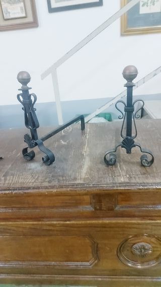 Pareja de morillos de chimenea en hierro y bolutas de bronce Más artículos en página web