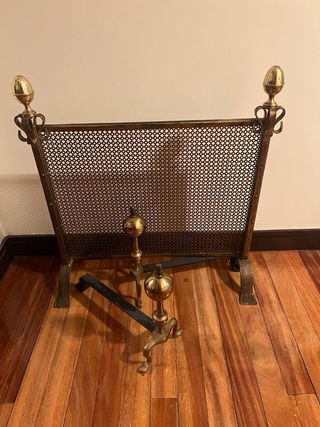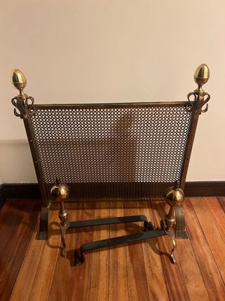 Elegante protector de chimenea con un diseño clásico y detalles dorados. Las medidas son 70 cm x 70 cm para la pieza más grande. Las dos más pequeñas son 34 cm x 40 cm