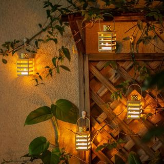 Casita artesanal hecha en madera con aplique en la chimenea para poner vela