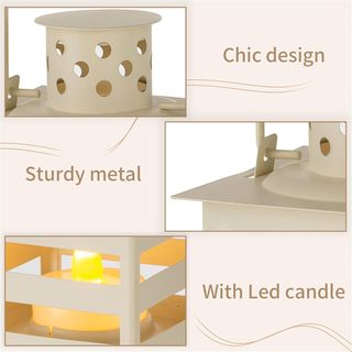 Linternas de Vela Blanca con Velas que Funcionan con Pilas, Mini LED Linterna Candelabros para Colgar de Metal Decorativo Linternas de Vela para la Chimenea Jardín Mesa de Comedor, 4Pcs
