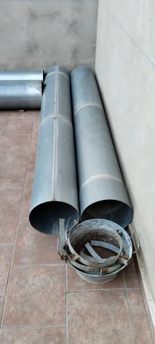 Tubos para chimenea exterior galvanizados. 4 piezas de un metro más campana. Diámetro exterior 19cm. Diámetro interior 12'8 cm. Entrego en mano en Yecla, Murcia.