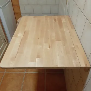 Mesa plegable de madera de abedul de Ikea. Es ideal para espacios reducidos y se puede plegar para ahorrar sitio. - Diseño funcional y ligero. - Acabado natural de la madera.
