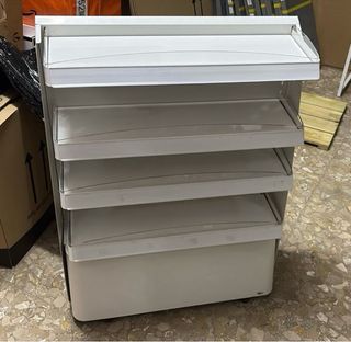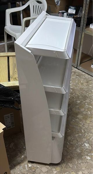 Mueble expositor de diseño moderno y líneas Costó tresciento y pico esta nuevo Ancho 80cm Fondo 20cm Alto 110cm - Color blanco. - Múltiples niveles para exhibición.