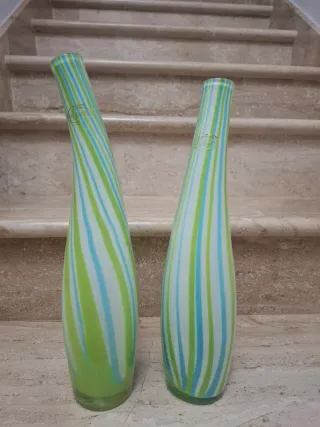 Elegantes jarrones de cristal con un diseño vibrante y moderno. Añaden un toque de color a cualquier espacio. - Diseño de rayas verticales en verde y azul. - Fabricados en cristal de alta calidad.