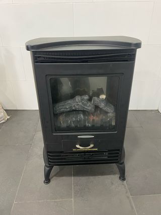 Chimenea eléctrica de estilo clásico, ideal para dar un toque acogedor a tu hogar. Funciona y calienta perfectamente. Lo único que no se ilumina la luz de dentro que simula el fuego. - Diseño elegante en color negro. - Frontal con cristal. - Patas decorativas.