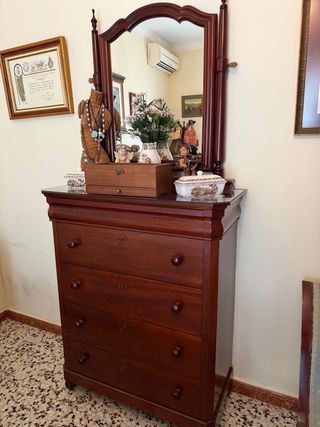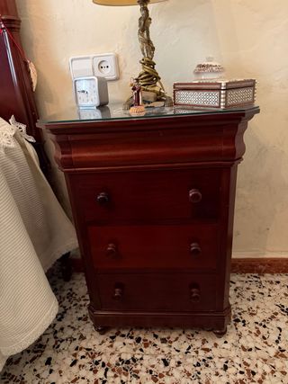 Conjunto de muebles de caoba para dormitorio. Piezas elegantes y de calidad. - Acabado en madera de caoba. - Diseño clásico y atemporal.