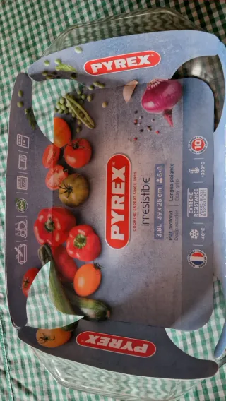 Bandeja de horno Pyrex de la línea Irresistible, perfecta para tus preparaciones culinarias. - Capacidad: 3.8 Litros. - Dimensiones: 39 x 25 cm. - Apta para horno hasta +300°C. - Resistente a cambios bruscos de temperatura (desde -40°C). - Fácil de agarrar gracias a sus asas.