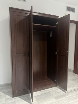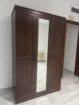 Armario de tres puertas en acabado wengue. Cuenta con un espejo central. - Diseño de tres puertas. - Espejo integrado en la puerta central.