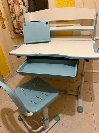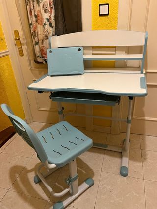 Conjunto de mesa y silla para estudio o dibujo, ideal para niños de 4 a 12 años. La altura de la mesa y la silla es ajustable para adaptarse al crecimiento. - Tablero inclinable para mayor comodidad. - Bandeja para lápices y material de estudio. - Estructura robusta y estable. - Diseño moderno y funcional.