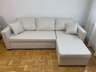 Sofá cama de tela en color gris, con poco uso. Las medidas están detalladas en las fotos. - Ancho: 2.20 cm - Profundidad: 95 cm - Alto: 1 metro - Cama abierta: 2.10 cm