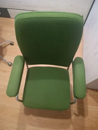 Silla de oficina con un diseño moderno y funcional. - Tapicería en tela. - Base giratoria de metal con ruedas.
