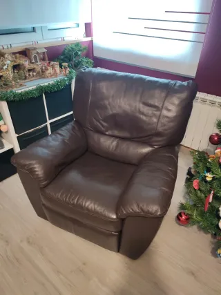 Este sillón reclinable es de piel de calidad. Italiano, marca italsofa conocido por una de las mejores marcas de sillones y sofás de el mercado. Es giratorio sobre su base, abatible de piernas y respaldo, también se puede mover con pequeños movimientos como mecedora, sofá de lactancia. Tiene muy poco uso, ya que está en una segunda residencia, se vende por reforma del salón. Precio de nuevo 650€. - Color marrón oscuro. - Material de piel.