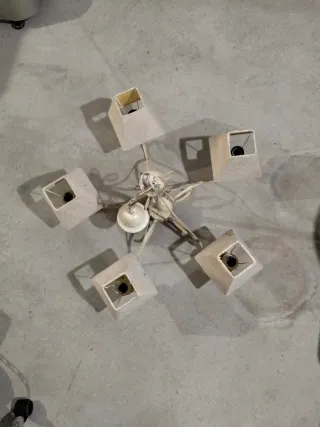 Elegante lámpara de techo de gran tamaño, con un diseño que combina tonos beige y blanco. - Estructura metálica. - Pantallas de tela.
