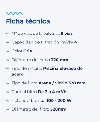 Depuradora de arena/vidrio Grepool de 4m3/hora, para piscinas de <32000 litros.