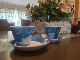Set 2 Tazas Café Funky Fish con caja regalo metal