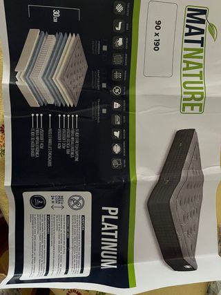 Colchón de la marca Matnature con medidas de 90x190 cm. Lo vendo porque se lo compramos a mi madre y es muy alto para ella. Lo compramos en abril, pero no le vale. A recoger en Velilla de San Antonio. - Altura de 30 cm. - Tejido Stretch capitoné. - Fibra hipoalergénica. - Viscoelástica 1 cm. - Viscosoft 2 cm. - Viscosoft 4 cm. - Núcleo de muelles ensacados. - Tejido 3D acolchado.