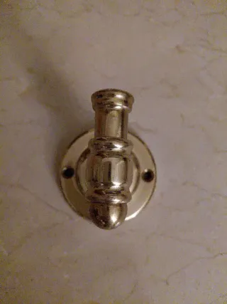 Colgador de latón con un acabado dorado. Ideal para colgar objetos. - Diseño clásico y elegante. - Montaje sencillo.