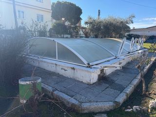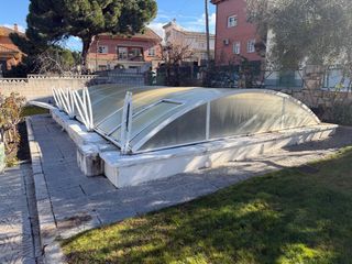 Cubierta para piscina de 8.20x4.80 fabricada en policarbonato celular. Protege tu piscina y mantiene el agua limpia. - Estructura metálica. - Paneles de policarbonato. - Diseño curvo.