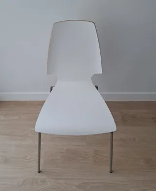 Conjunto de cuatro sillas Vilmar de Ikea. Su diseño moderno y ergonómico las hacen perfectas para cualquier espacio (cocina, comedor, despacho, habitación juvenil). - Asiento y respaldo ergonómicos. - Patas metálicas resistentes. - Apilables