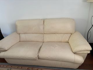 Cómodo sofá de tres plazas con un diseño moderno y elegante. - Tapicería de cuero. - Color beige neutro.