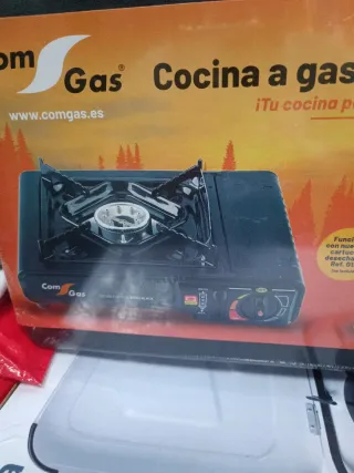 Cocina a gas portátil Com-Gas, modelo BS. Ideal para llevar contigo. - Potencia de 2 Kw. - Consumo de 146 g/h. - Encendido piezoeléctrico. - Parrilla fija. - Certificada CE.