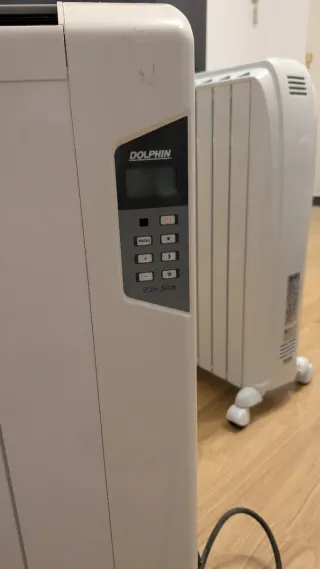 Radiador eléctrico Dolphin Eco-Slim en color blanco. Enciende pero no calienta. Toda la parte electrónica del panel y el mando funcionan perfectamente.