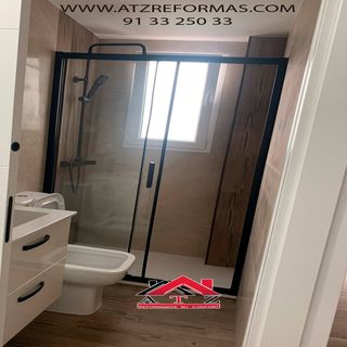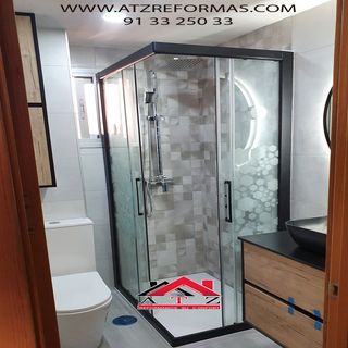 ATZ REFORMAS OFERTA BAÑO DESDE 4299 - Red de agua fría/caliente en cobre-multicapa. - Columna de ducha y gritería marca UG - Amplia gama de azulejos. - Pintura de techo. - Alicatado. - Lechada impermeable. - Mampara de cristal templado serigrafiado. - Plato de ducha de resina extraplano-antideslizante 120X70 - Red de desagüe en PVC. - Solado. - Protección y desescombro total - Mueble y encimera de lavado. - 2 Llaves de corte de red de agua. - Espejo. - Electricidad 2 enchufes. - Aplique led de bajo consumo. - Sanitarios marca Roca modelo Victoria. - 913325033 692654317