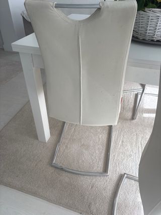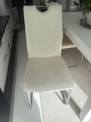 Conjunto de dos sillas de comedor con un diseño moderno y elegante. - Tapicería en polipiel blanca. - Patas metálicas cromadas.