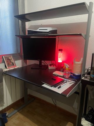 Mesa de estudio con un diseño moderno y funcional. - Estructura robusta de metal. - Superficie de madera. - Detalles en plástico. -fácil montaje y desmontaje -Se puede modificar las alturas