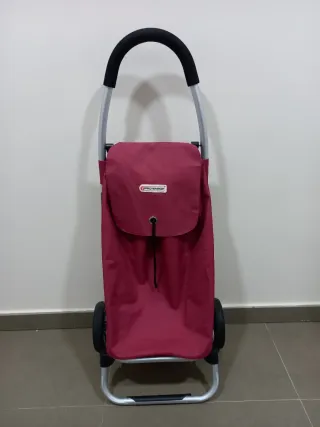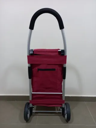 Como nuevo. Carrito de compra con estructura metálica y bolsa de tela. - Bolsa de tela de color rojo. - Ruedas para facilitar el transporte. - Asa ergonómica. - Diseño plegable.