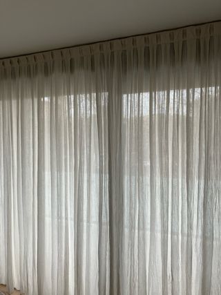 Elegantes cortinas de diseño de El Corte Inglés, perfectas para dar un toque de estilo a tu hogar. - Confeccionadas en tejido de lino. - Color beige y blanco.