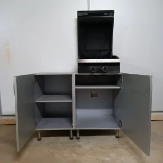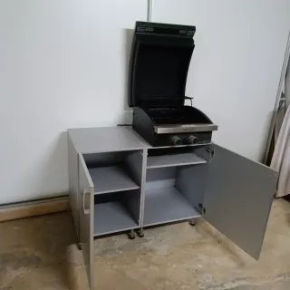 Barbacoa de gas con un diseño moderno y funcional. Ideal para disfrutar de tus comidas al aire libre. - Acabado en negro y gris. - Fabricada con materiales resistentes.