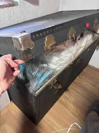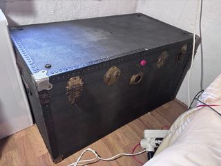 Este baúl antiguo presenta un acabado en color negro y detalles en dorado. Es perfecto para almacenaje (lo que se ve en el interior no se vende🙏🏽) - Diseño clásico. - Construcción robusta. Está usado pero en bastante buenas condiciones.