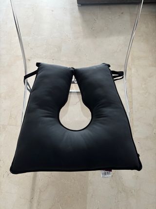 Cojín diseñado para aliviar la presión en la espalda. Nuevo. Lo compramos y no se llegó a estrenar. Costó 150 euros, comprado en diciembre de 2025. - Cierre de velcro para un ajuste seguro. - Funda extraíble para facilitar la limpieza.
