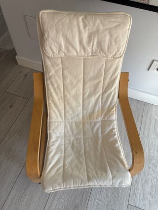 Butaca Poäng de Ikea en excelente estado, como nueva. Un mueble icónico y cómodo para tu hogar. - Estructura de madera curvada. - Cojines acolchados para mayor confort.