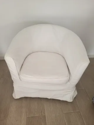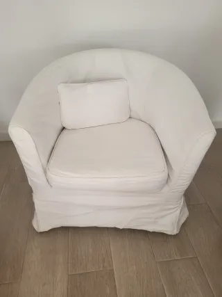 Cómodo sillón de Ikea en color blanco. Su diseño envolvente lo hace perfecto para relajarse. - Funda de tela. - Cojín decorativo incluido.