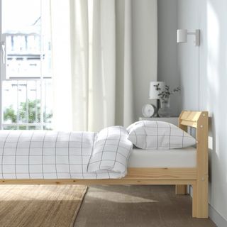Cama individual de madera con un diseño sencillo y elegante. Perfecta para cualquier habitación. - Estructura Neiden de madera de pino. - Incluye somier. - Incluye colchón 200x90x18cm La estructura y el somier son nuevos. Se compraron para una habituación secundaria y NUNCA se ha usado. Tampoco las sábanas y el cojín, que también está incluido. Trato en mano en Sueca