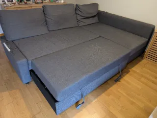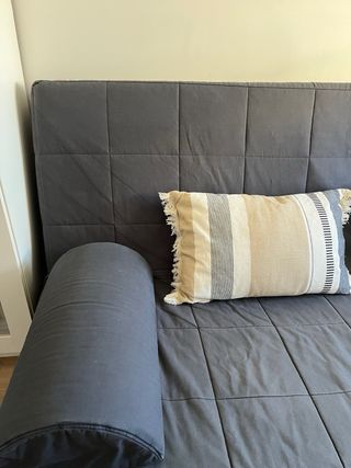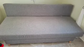 Vendo sofá cama IKEA de 3 plazas, casi a estrenar. Vendo por mudanza con 1 mes de uso. Color gris oscuro. Muy cómodo y práctico, se convierte fácilmente en cama grande. Espacio de almacenamiento. 4 cojines. ✅ Se hace cama en segundos ✅ Incluye cojines (los de la foto) ✅ Muy buen estado, limpio y sin roturas ✅ Ideal para salón, estudio o piso de alquiler 📏 Medidas sofá: 194 x 82 cm 📏 Medidas cama: 194 x 135 cm 🛏️ Altura asiento: 41 cm Se puede ver y probar sin compromiso. Recogida en mano (no hago envíos)