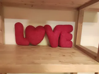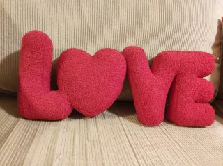 Este cojín decorativo en forma de letras deletrea la palabra LOVE. Es un accesorio llamativo para cualquier espacio. - Diseño de letras LOVE. - Color rojo vibrante. - Textura suave al tacto.